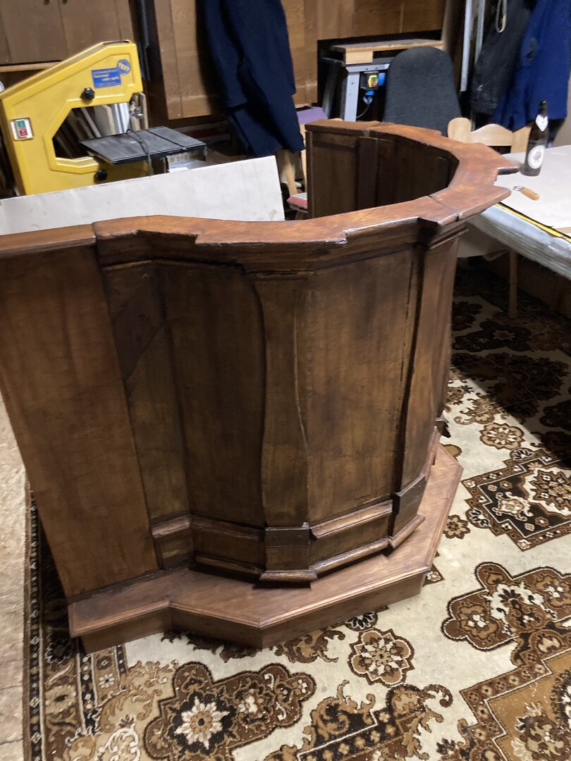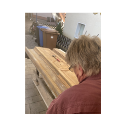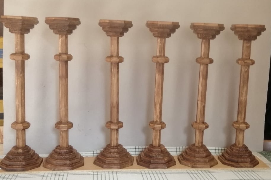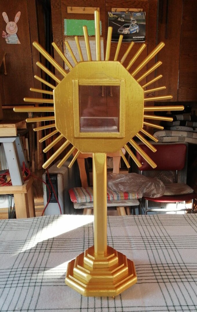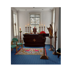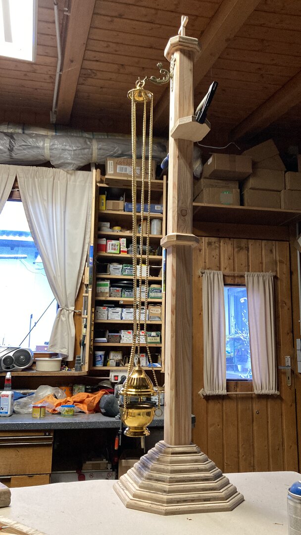 Durch besondere Gnade des Herrn ist unser lieber Br. Walter Alois zu unserem Orden gekommen und hat zunächst mit kleineren Werkstücken unsere Austattung verfeinert. Über die Jahre sind auch große Sakralmöbel entstanden, so dass es heute in unserer Kapelleneinrichtung nicht ein Exponat gibt - inklusive Kanzel und Altar - das nicht von ihm durchbetet geschaffen wurde.
