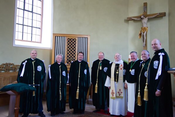Am 30. April 2023 gründeten acht wackere Recken den Souveränen und höchst ehrenhaften Ritterorden VOM GUTEN HIRTEN zu Unterbessenbach im Spessart. Der Diakon P. Dietholf Maria Schröder legte vor dem Gründungspropst P. Dr. theol. Philippus Tropf Profess ab. Fünf ehrenfeste Männer von gutem Ruf erhielten von Br. Augustinus Ritter von Grünenberg die Schwertleite und sind so in den Ritterstand erhoben. Alle sind ihrer Berufung Gottes gefolgt: "Er ruft die, die er selbst will" (Mk 3,13) war mithin auch das Thema der Festpredigt von Propst Philippus.