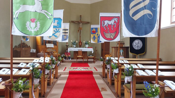 Die acht Ordensgründer hissten erstmals die von ihnen fortan geführten Wappen in der Ordenskirche. Im Rahmen einer Festandacht wurden sie von Propst Philippus gesegnet. In seiner Predigt bezog sich der Propst auf Paulus, der sagt: "Wenn Christus für uns ist, wer ist dann gegen uns?"(Röm 8,31) und verdeutlicht damit, dass der Herr unser eigentliches Wappenschild ist.