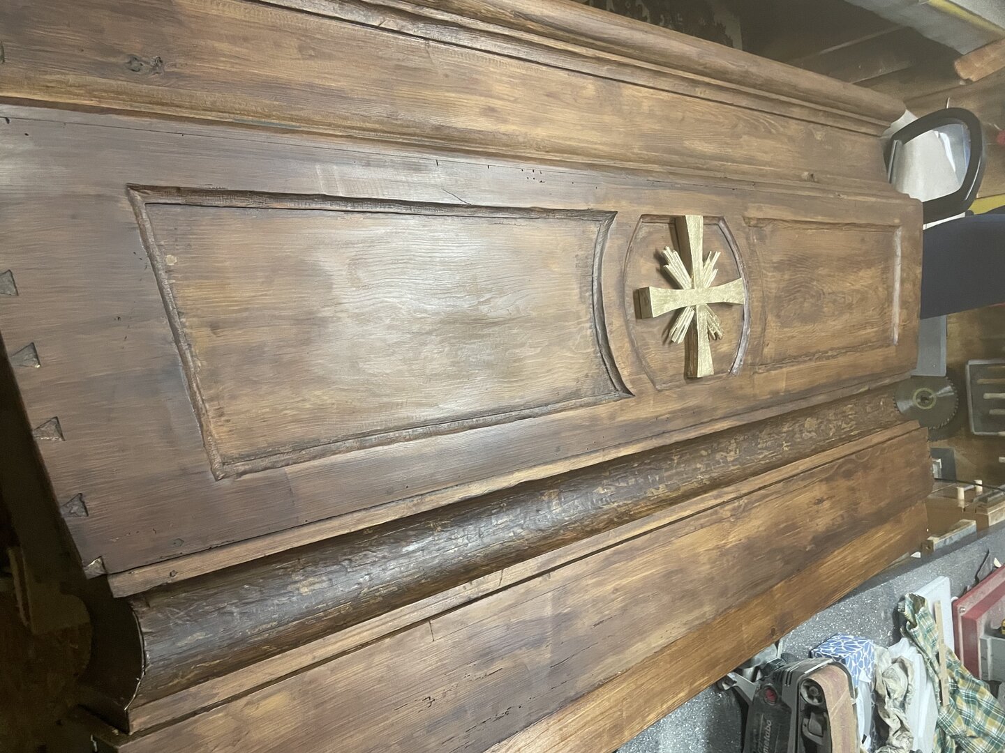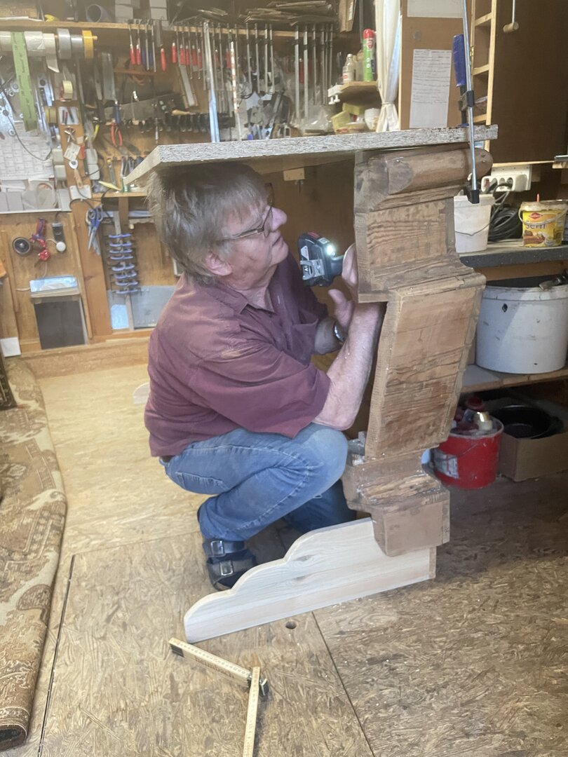 Durch besondere Gnade des Herrn ist unser lieber Br. Walter Alois zu unserem Orden gekommen und hat zunächst mit kleineren Werkstücken unsere Austattung verfeinert. Über die Jahre sind auch große Sakralmöbel entstanden, so dass es heute in unserer Kapelleneinrichtung nicht ein Exponat gibt - inklusive Kanzel und Altar - das nicht von ihm durchbetet geschaffen wurde.